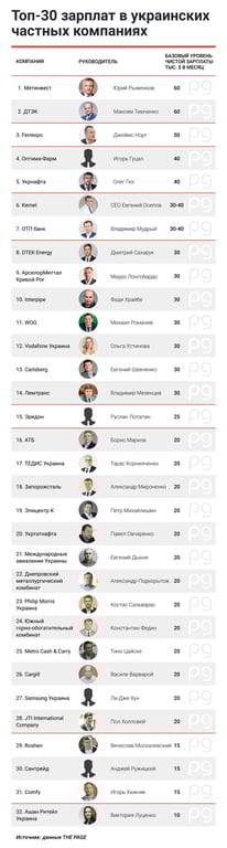 Зарплата топів зазвичай складається з базової частини і винагороди. При оцінці журналісти використовували дані про чисту зарплату, які надали найбільші HR-агентства України.