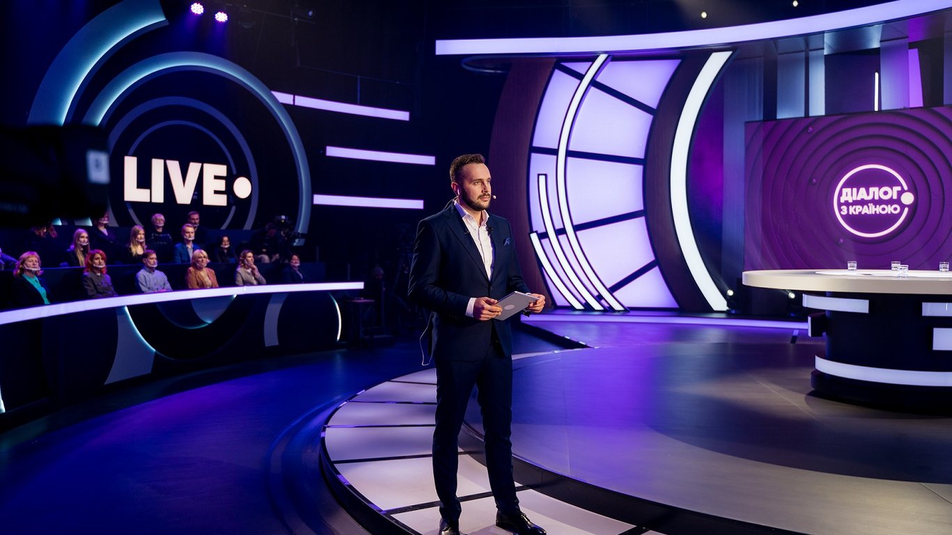 "Діалог з країною" - це політичне ток-шоу, за форматом якого впродовж двох годин ведучий разом із політиками, представниками влади та експертами обговорюють найважливіші для українців питання - від вартості проїзду в транспорті до геополітики й місця України в ній.