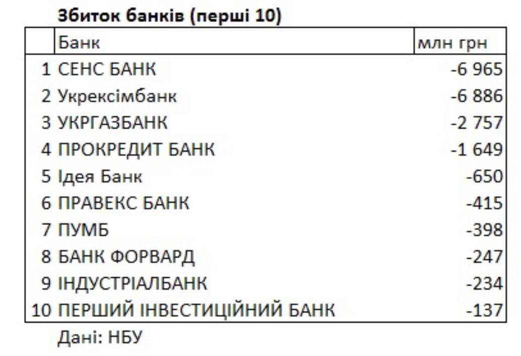 - Сенс Банк (раніше — Альфа-банк) — 6,965 млрд грн;
