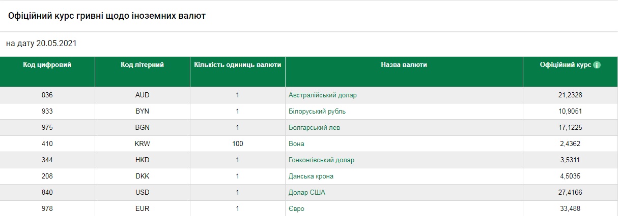 У четвер, 20 травня, курс гривні трохи підвищився. У порівнянні з доларом українська валюта зросла на 2 копійки, проти євро – на 4 копійки.