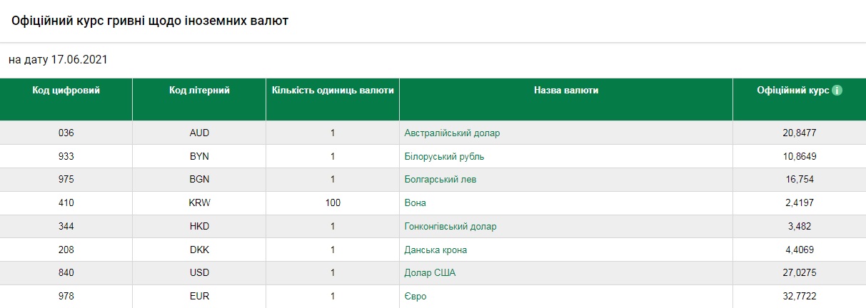 У четвер, 17 червня, курс гривні серйозно зменшився. У порівнянні з доларом українська валюта ослабла на 10 копійок, проти євро – на 15 копійок.