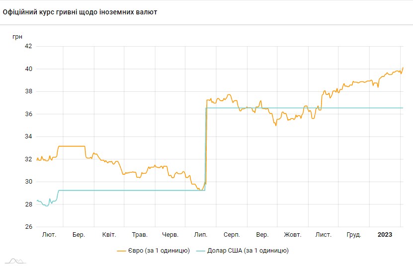 При цьому офіційний курс долара залишається на рівні 36,56 грн. На початку повномасштабної війни НБУ зафіксував вартість американської та європейської валюти (29,25 грн) та євро (33,17 грн). Однак з березня почав встановлювати курс євро у залежності від коливань пари євро-долар на світовому фінансовому ринку. У липні НБУ підвищив долар на 25%, до 36,56, здорожчав і євро.