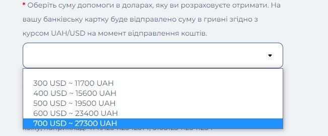 Примітно, що розмір фінансової допомоги можна вказати самостійно.