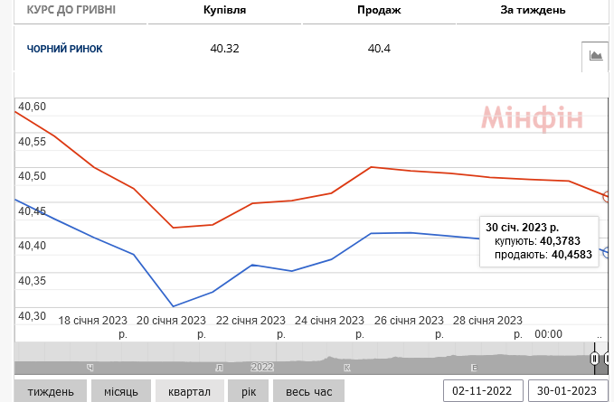 Динаміка курсу американської валюти на чорному ринку за даними порталу Мinfin:
