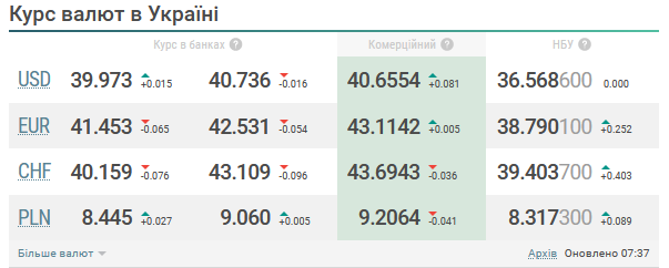 У державному Ощадбанку курс встановлено на рівні у купівлі — 40,15 гривні, у продажу — 40,85. Курс нижчий на п'ять копійок проти попереднього дня.