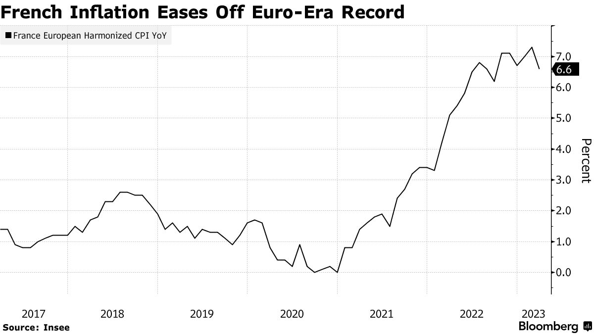 Інфляція у Франції знизилася вперше за три місяці на тлі уповільнення в інших великих економіках єврозони після минулорічного сплеску вартості енергоносіїв, викликаного війною в Україні. Споживчі ціни зросли на 6,6%, що менше від рекордного показника у лютому на 0,7%.