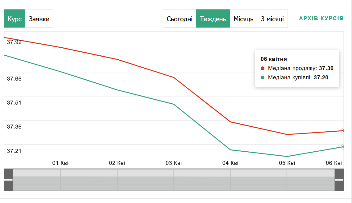 Укрексімбанк — 37,00 грн — 37,60 грн;