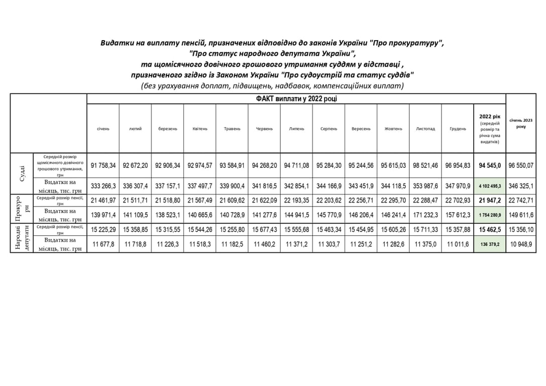 - 3637 одержувачів щомісячного довічного грошового утримання за законом "Про судоустрій та статус суддів".