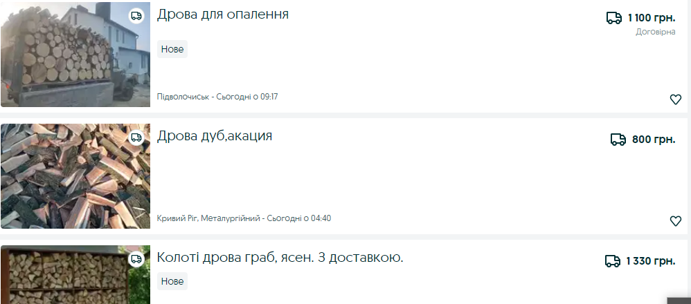 Як альтернатива для обігріву — дрова. Ціни на них залежать від виду дерева, а які вони — колодами чи колоті.