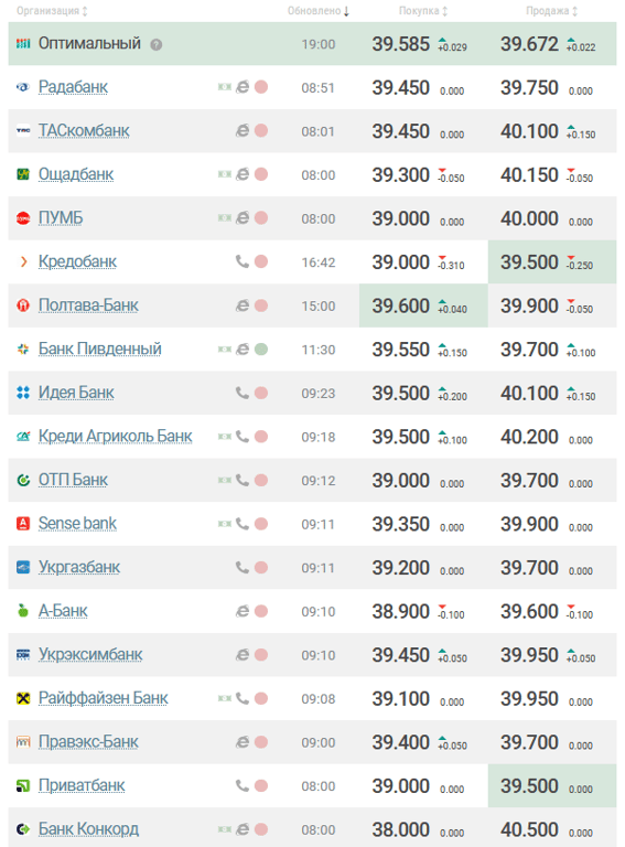 ПриватБанк не поменял курс. В покупке составляет 39,00, в продаже — 39,50 грн/долл. Месяц назад торговался на уровне 39,80 грн/долл. в покупке., 40,30 грн/долл. — в продаже.