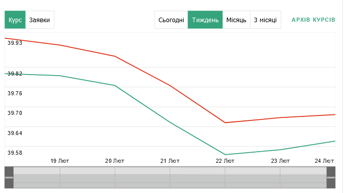 По состоянию на конец января доллар торговался так: в покупке — 39,86, а в продаже — 40,57 грн/долл.