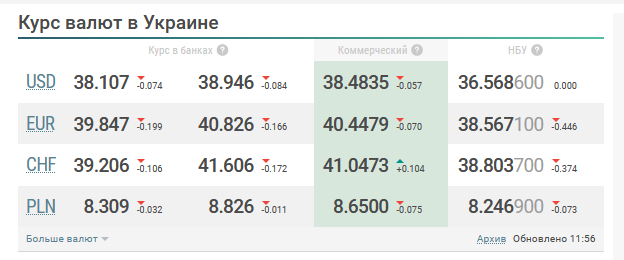Укргазбанк выставил курс в покупке на уровне 37,70 (-0,30 грн), в продаже — 38,70 (-0,30 грн).