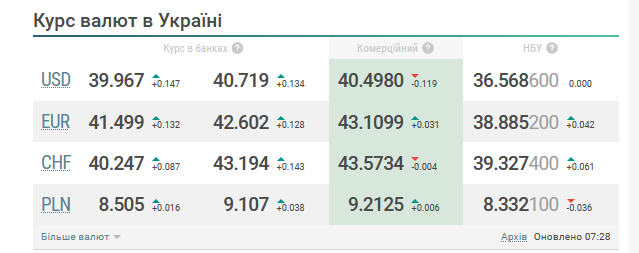 Укрэксимбанк за день повысил курс на 20 копеек, до 40,40 в покупке и 40,90 — в продаже.