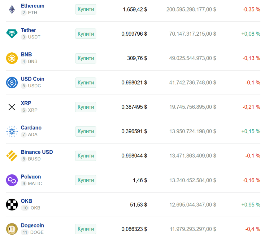 Ниже представлена информация о других капитализированных криптоактивах: