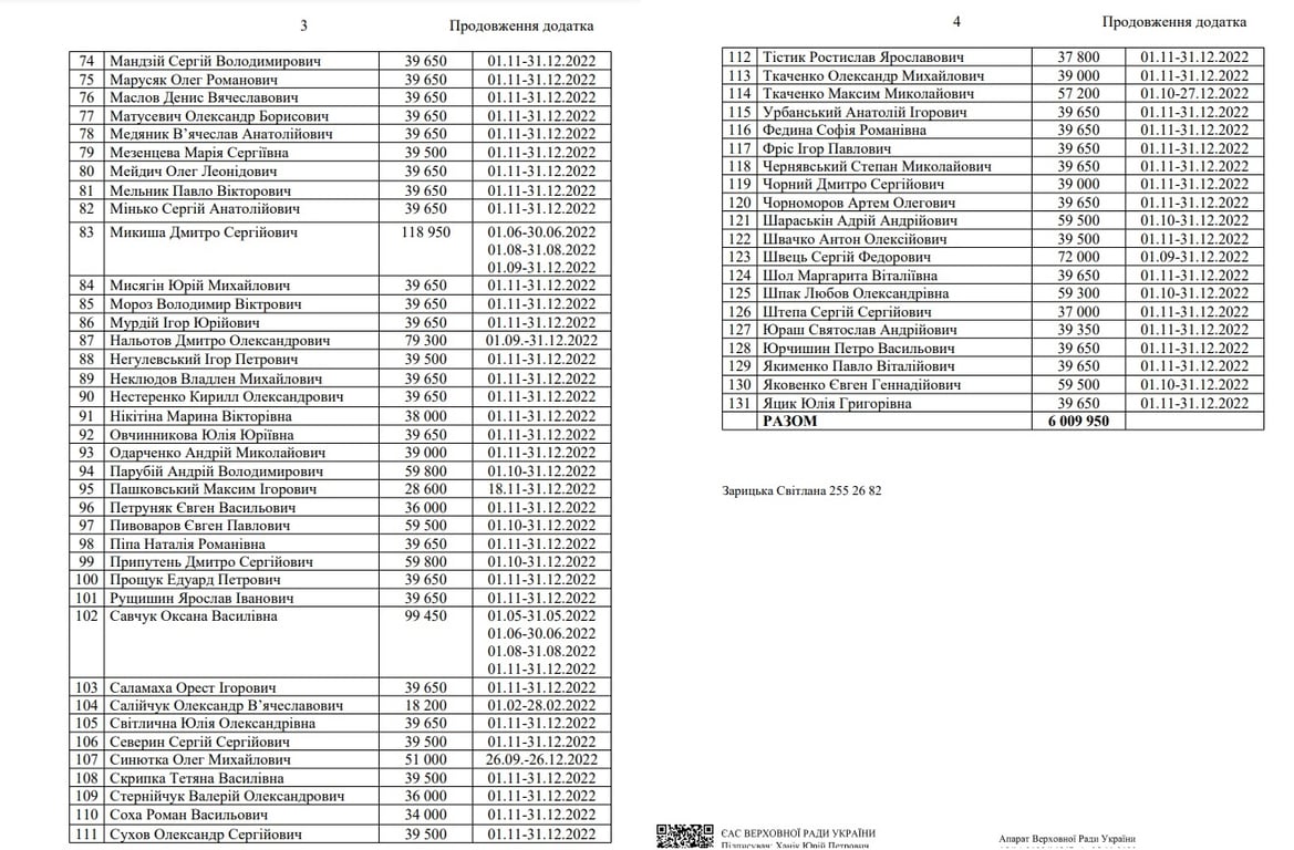 Список, кому выплатили средства, обнародовал Аппарат Верховной Рады.
