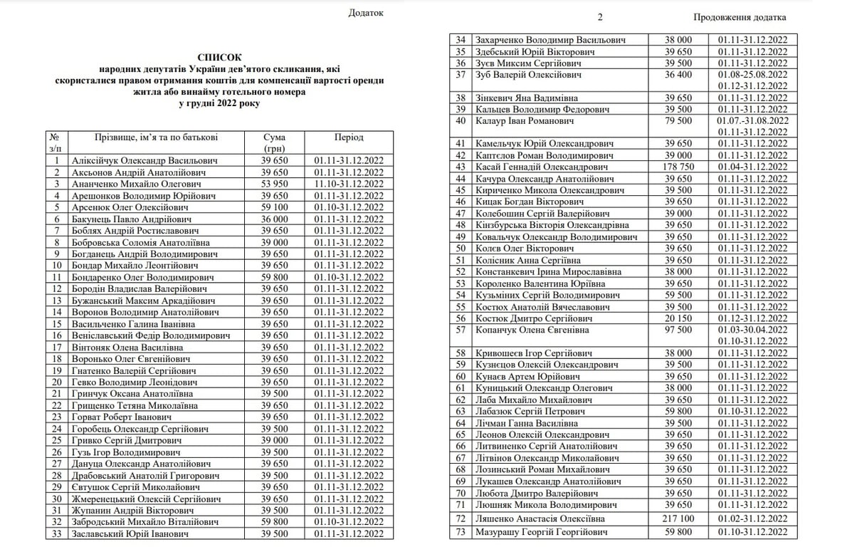 Большинству заявителей выплатили 39,65 тыс. гривен на аренду жилья. При этом суммы у всех разные. Некоторые политики получили более 217 тыс. гривен.