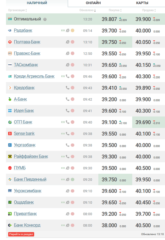 Так, наличный доллар в начале февраля стоил выше 40 гривен, а в последнее время наблюдается медленное опускание ниже этой отметки в некоторых банках. В обменниках финкомпаний тоже продолжают снижать цены на валюту.
