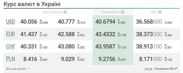 ПУМБ установил курс в покупке на уровне 40,25, в продаже — 41,25 гривны.