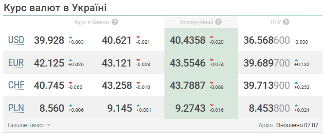 Sense bank выставил курс доллара тоже ниже. В покупке — 40,30 грн/долл, в продаже — 40,65 грн/долл. (-20 копеек).