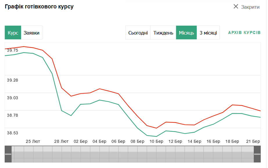 Ощадбанк — 38,35 грн — 39,15 грн;