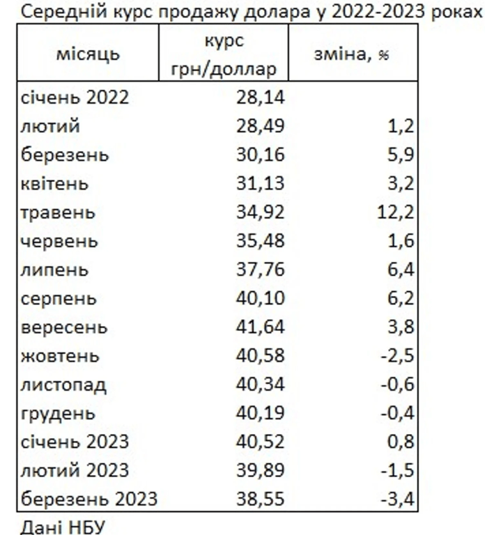 По информации регулятора, в марте на валютном рынке средний курс наличного доллара в продаже потерял 3,4%, опустившись до показателя 38,55 гривны. Подобный уровень фиксировался летом прошлого года.