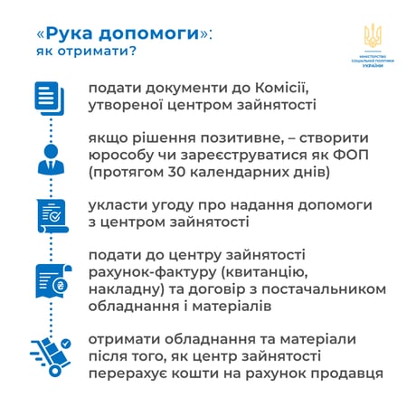 Для отримання такої допомоги людина, яка має бажання розпочати підприємницьку діяльність, має звернутися до найближчого Центру зайнятості.