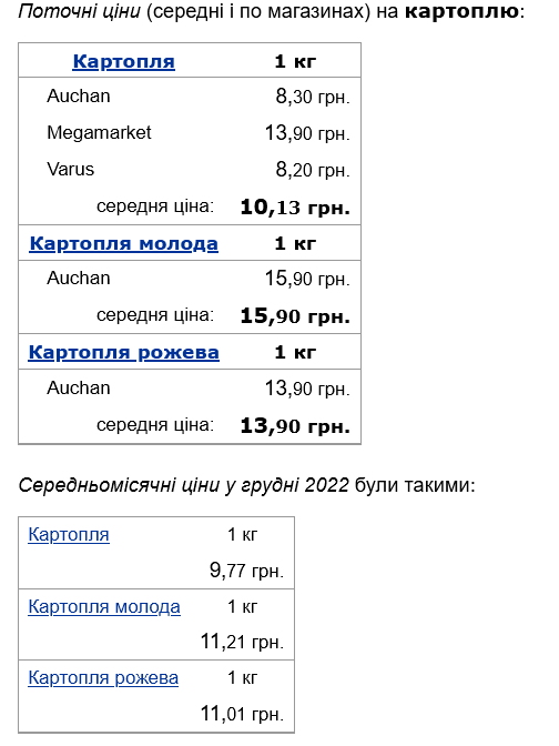 Зокрема, вартість молодої картоплі підвищилася практично на 5 грн/кг: якщо в останній місяць минулого року коштувала 11,21 грн/кг, то під кінець січня — 15,90 грн/кг.