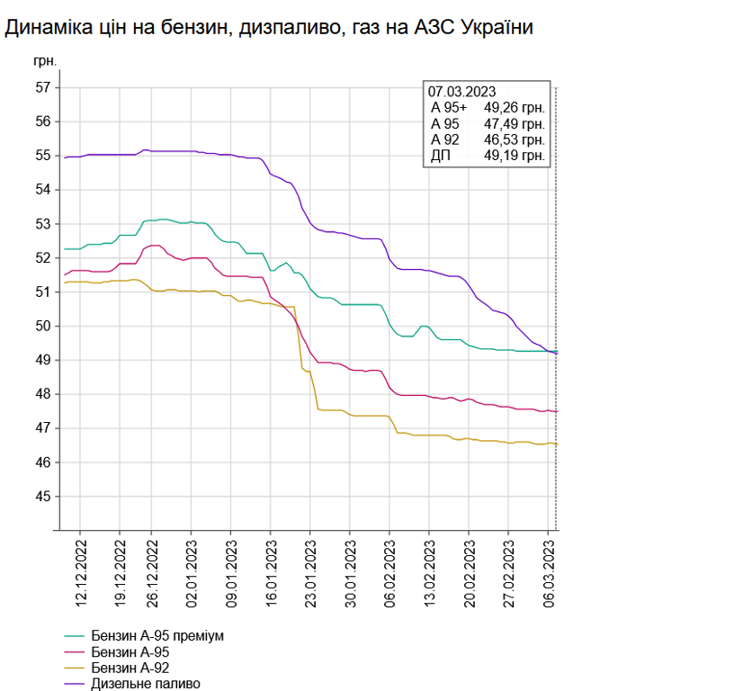 За словами директора Консалтингової групи "А-95" Сергія Куюна, в Україні з початку року, окрім бензину і дизельного палива, які подешевшали на 4-5 грн на кожному літрі (на 8-10%), упав у вартості і автомобільний газ (на 20%).