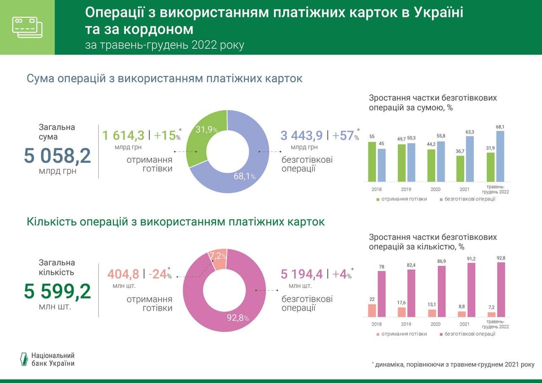 Нагадаємо, упродовж 2022 року на тлі війни українці збільшили використання платіжних карток для безготівкових розрахунків всередині країни. Також суттєво зріс обсяг операцій із картками за кордоном.
