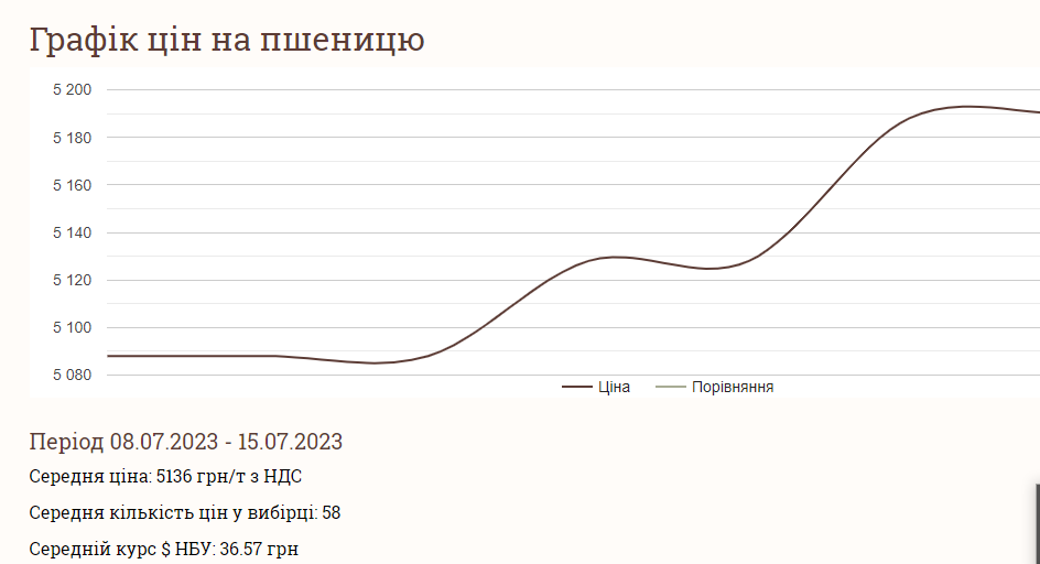 Зазначається, що зерно пшениці протягом останнього тижня подорожчало. Якщо на початку минулого тижня середня вартість тонни пшениці становила 5088 грн, то вже наприкінці за тонну правили 5192 грн. Тобто, за тиждень пшениця додала у ціні в середньому 104 гривні.