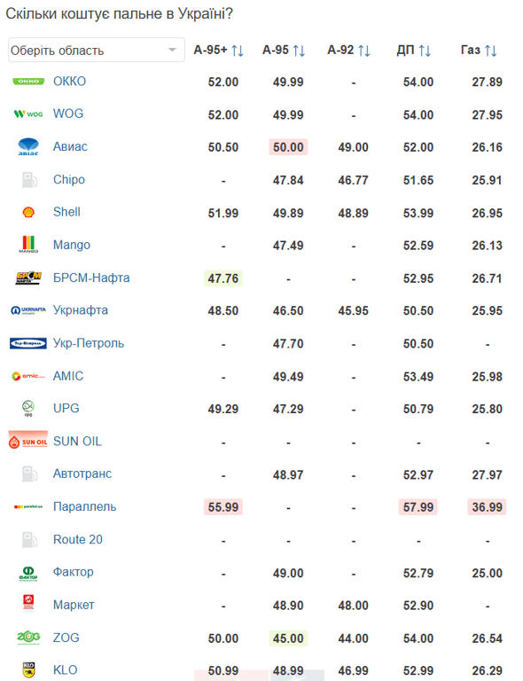 Зазначається, що за добу А-95 у середньому здешевшав незначно — на 0,01 грн. Найдешевше його можна придбати на АЗС ZOG — за 45 грн за літр.