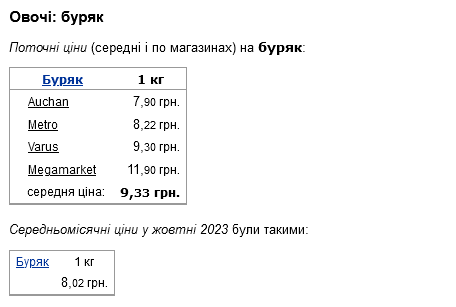 Які зараз ціни на буряк у магазинах